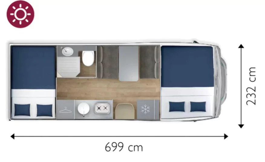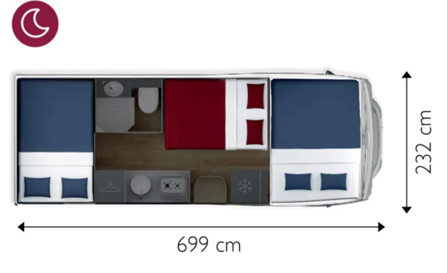 Rear bed 136 cm wide
